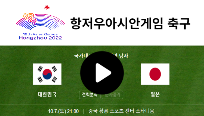 드디어 아시안게임 축구 결승전이 다가왔습니다. 가위바위보도 지면 안된다는 일본과 결승에서 만나게 되었는데 이번 결승에서 금메달을 따면 아시안게임 3연패를 달성하게 됩니다. 실시간 중계 빨리 보고 싶은 분들은 아래에서 바로가기 하시면 됩니다.
